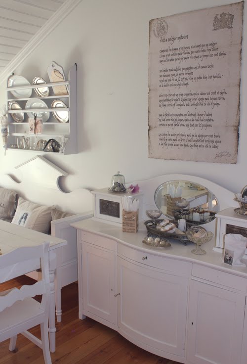 Ovanför spegelbyrån har vi satt upp ett dokument (från vår nätbutik), eftersom det kändes tomt då vi äntligen fick ner girlangen av lingonris som hängt kvar sedan jul ;).